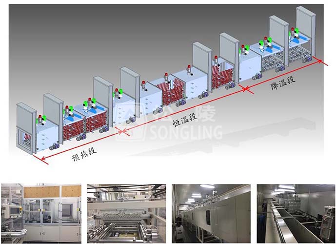 隧道式全自動(dòng)真空烘烤線是根據(jù)客戶現(xiàn)有生產(chǎn)和工藝需要,專門(mén)開(kāi)發(fā)的一款電池注液前烘烤的自動(dòng)真空隧道式流水線;如果更換相關(guān)工裝夾具,同時(shí)也可以進(jìn)行極卷的烘烤和電芯規(guī)格烘烤。